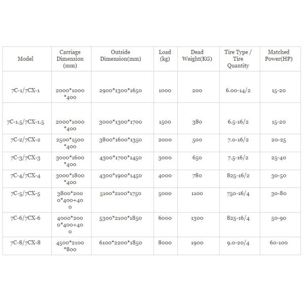 The ABC-TT series farm trailer has various types form 0.5T-8T. The product has reasonable structure; beautiful appearance, economic and durable and also can match various types of tractors, it is divided into many kinds of types :single axle of two wheel trailer, double axles of four wheel trailer, hydraulic dump or no-hydraulic dump .it also can be made according client's requirements,the following parameters table is only for reference .
